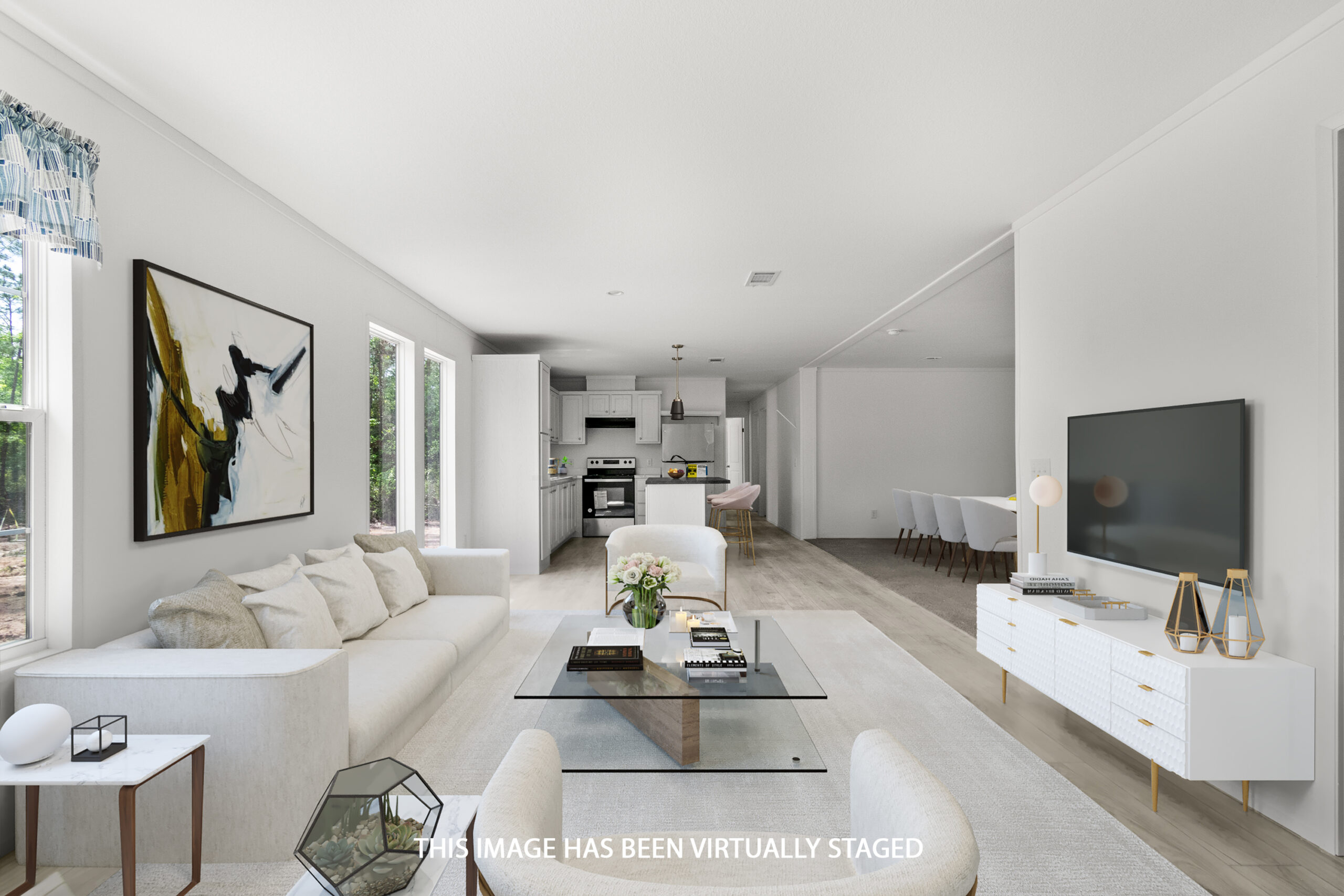 Now is your chance to own this beautiful drywall brand new 2024 manufactured home. If you love country living, but still want to be close to Palm Coast, St. Augustine, and Palatka, this home is perfect for you. The 4 bedroom, 2 bath, 1798 square foot home sits on a beautiful corner lot of 0.85 acres. The kitchen features an open-concept design with classic pendant lights, new stainless steel appliances, and upgraded wood cabinet doors. Two of the bedrooms boast spacious walk-in closets. This home features full drywall, smooth ceilings with overhead A/C vents, A 4-ton AC unit from a reputable brand with heat pump, upgraded OSB house wrap on front and rear end walls, and ceiling fan preparation in both the living room and family room. Additionally, this home comes with a 7-year warranty!